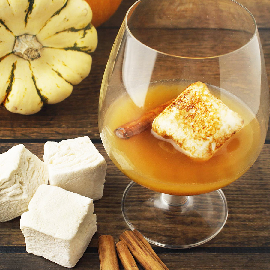 Acorn squash even works in beverages, where puréed roasted squash pairs with warming spices and spirits. Careful straining removes solids for a smooth texture. The squash adds subtle body and earthiness that complements caramel notes in honey bourbon. Cinnamon, nutmeg, and maple sugar enhance the squash’s natural sweetness, while brûléed apple marshmallows add a playful garnish that bridges dessert and cocktail traditions.