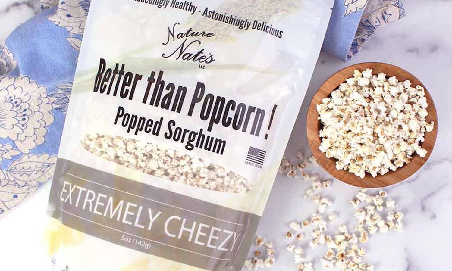 Sorghum is ready for its close-up! This ancient grain pops into tiny, crunchy spheres with a distinctly nutty flavor. Nature Nate’s has mastered the art with their irresistible varieties.