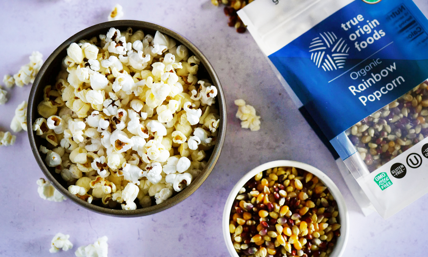 For those who like their snacks with visual flair, True Origin Foods’ rainbow popcorn has multicolored kernels. Perfect for parties or simply brightening a Tuesday night. Toss with coconut oil and nutritional yeast for a vegan “cheese” coating that rivals the real thing.