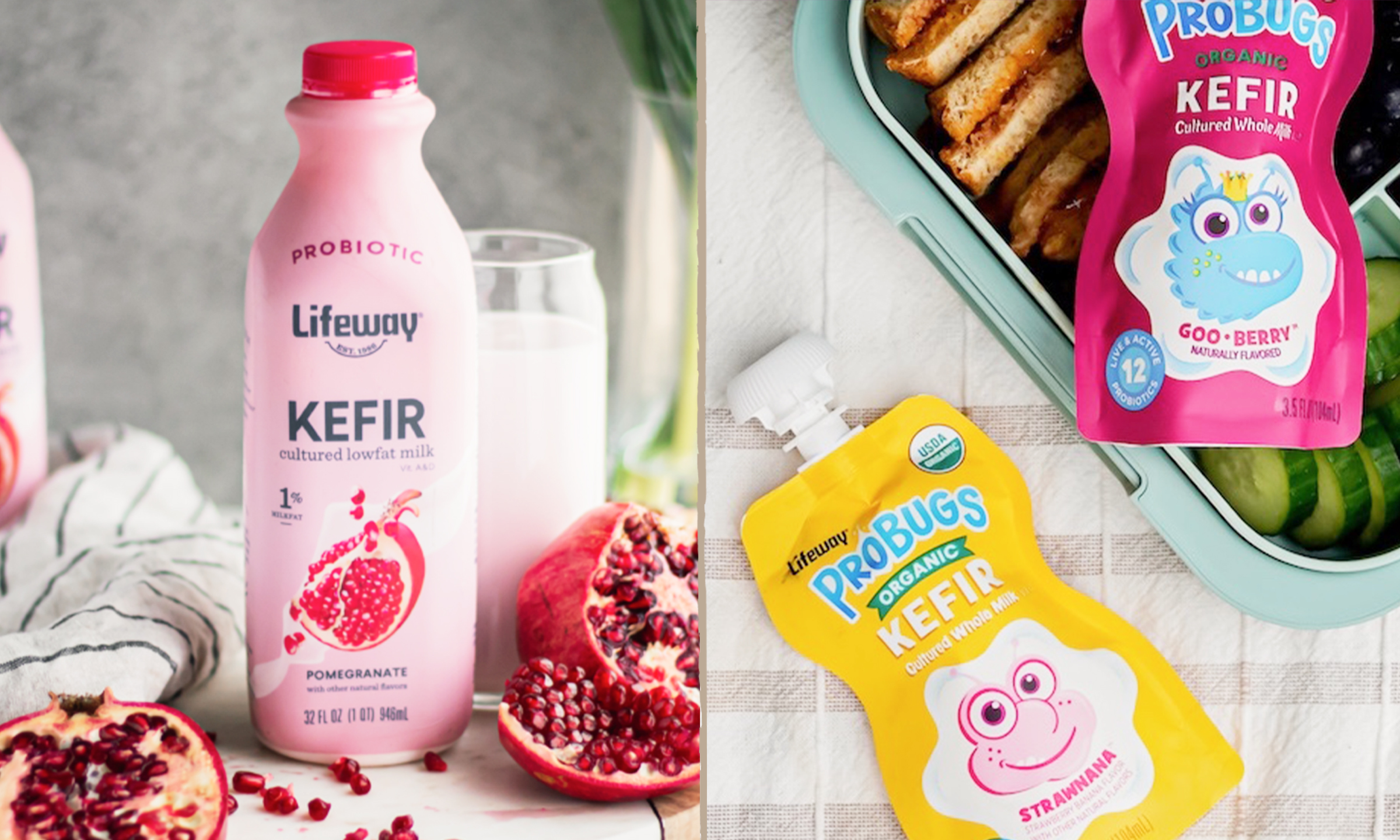 Probiotic drinks fit into routines differently than fermented vegetables. Lifeway’s Pomegranate Kefir, a tart cultured dairy drink with active cultures, can be drunk straight from the bottle or blended into smoothies for breakfast. For little bellies, try their no-spill poches filled with the same, great benefits. KeVita’s kombuchas, a delicious fermented tea, offer something refreshing between meals without the sweetness of juice or soda.